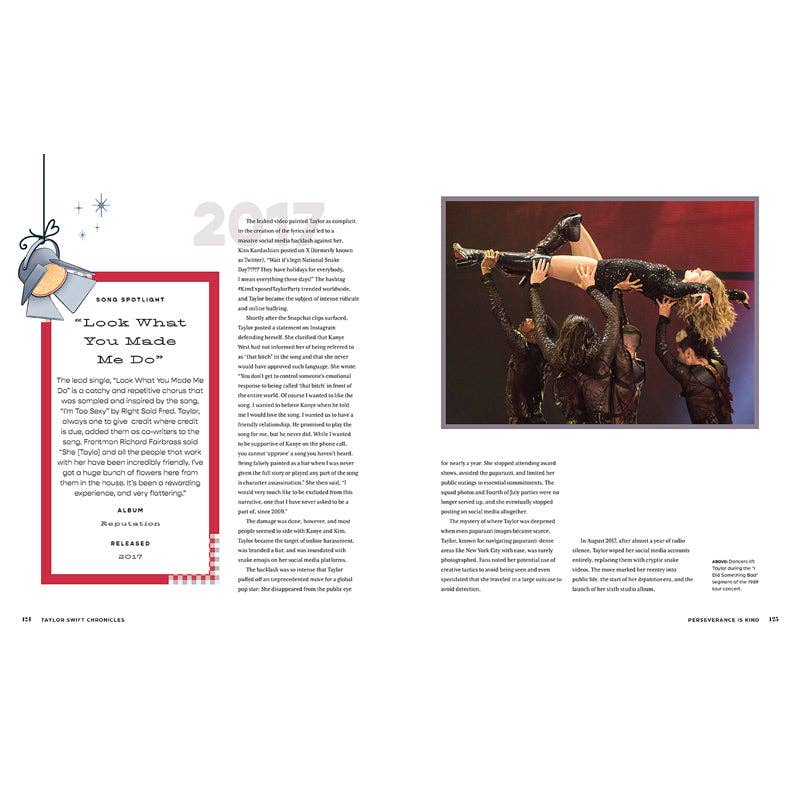 There has never been a phenomenon like Taylor Swift. But it is not just her music that makes her one of the most compelling figures in entertainment today. It is her big reputation full of generosity, compassion, connection to her fans, and business acumen that have made her so adored. Now, for the first time, Taylor’s life is explored through all of these hats (including the 22 hat!)—as a singer, songwriter, musician, businesswoman, philanthropist, and friend—to create a chronicle of someone who is not just talented, but also clever and kind. Dear Readers can follow Taylor’s journey through intriguing sidebars about her many kindnesses, infographics about her collaborators, and timelines following her tours and albums, as well as a fascinating and in-depth biography. Lavishly illustrated with rare images, original ephemera, and exclusive artwork, this book is a treasure for Swifties of any age, both OG and newly anointed tortured poets. A GREAT APPRECIATION: Whether you know her entire discography and have